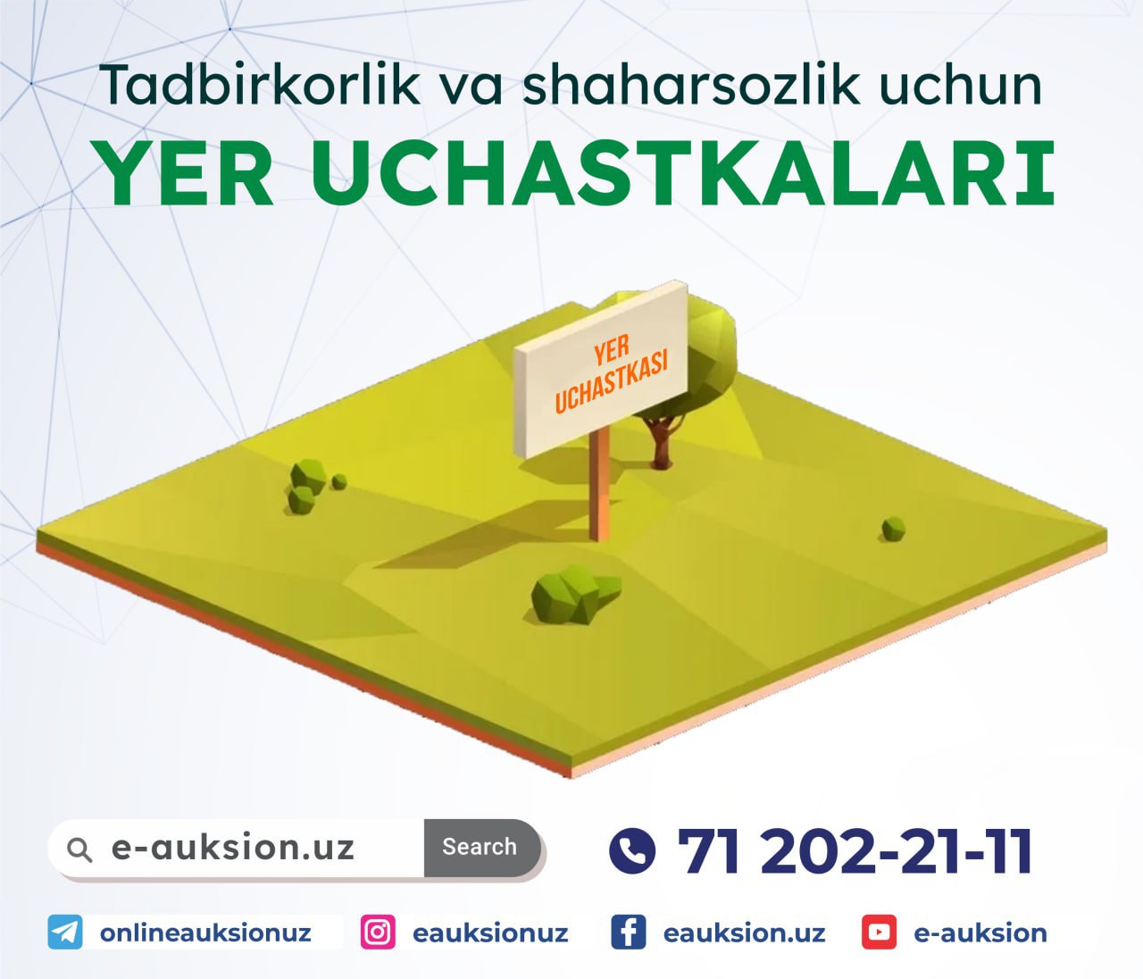 Барча ҳудудлардан ер майдонлари савдога чиқарилди, эндиликда ерлар сони кўпайишда давом этади.